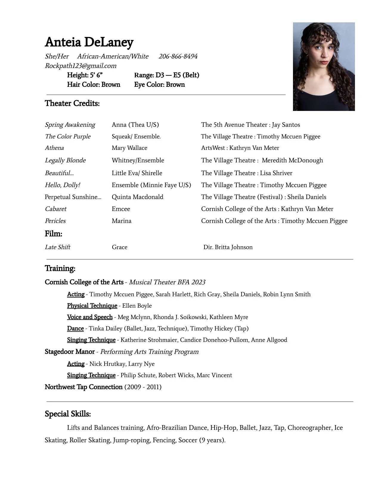 Anteia is an Actor, Singer, Dancer, and aspiring Playwright based in Seattle, Washington.
